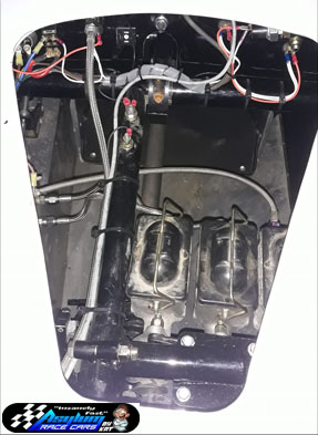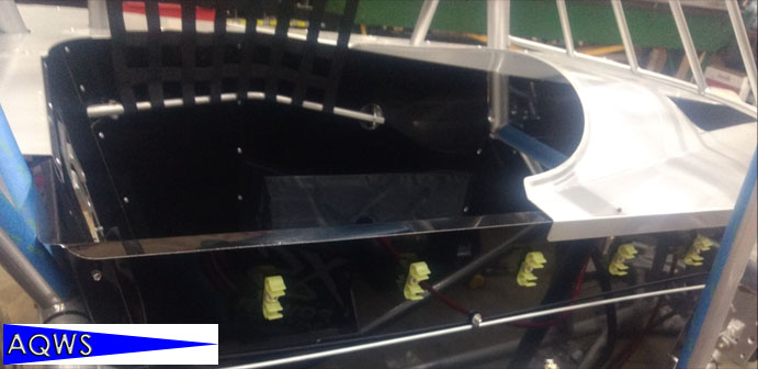 - Outside of the driver's compartment showing the latest design for securing the wiring from the battery and emergency switch to the front of the car (62k file)