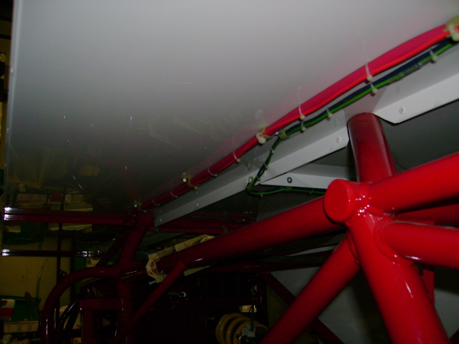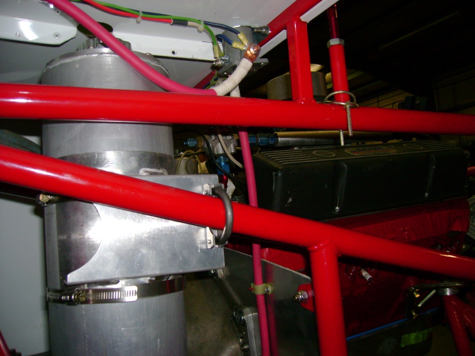 - Right-hand side of the car (under the horizontal panel), showing the routing of the battery power wire, alternator charging wire, and power wires to the ignition and starter switches (155k file)
